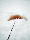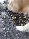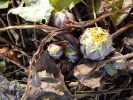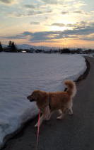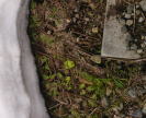 散歩中に雪の間から顔を出しているふきのとうを見つけました