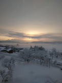 桜が咲き 春を感じている最中に 夜から雪が降り始めました。