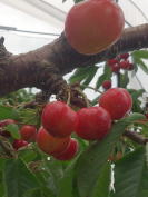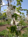 青空に季節を間違えたさくらんぼの花が咲いていました。