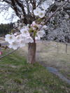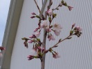 近所の桜は硬い蕾をしているのに一足先に咲き始めました。